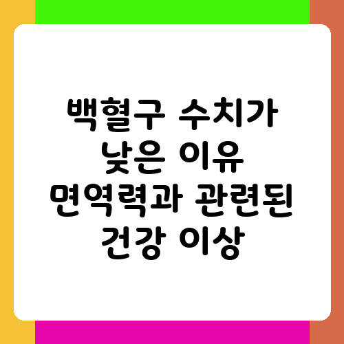 건강검진 결과를 받아보니 백혈구 수치가 낮다고 해서 걱정이 많으시죠? 백혈구는 우리 몸의 면역 체계에서 중요한 역할을 하는 세포인데, 수치가 낮다는 것은 면역력 저하를 의미할 수 있기 때문입니다. 이 글에서는 백혈구 수치가 낮아지는 원인과 면역력과의 연관성, 그리고 건강 관리 방법에 대해 알아보도록 하겠습니다. 혹시 걱정되는 부분이 있다면, 의사와 상담하는 것을 잊지 마세요.