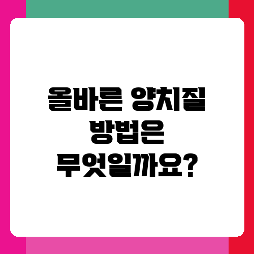 양치질은 단순히 칫솔을 왔다 갔다 하는 것이 아니라고 합니다. 올바른 양치질 방법은 치아의 모든 면을 꼼꼼하게 닦는 것이 중요해요. 치아의 겉면, 안쪽 면, 그리고 씹는 면까지 놓치지 말고 닦아야 효과적이라고 하네요. 또한, 칫솔을 45도 각도로 기울여 잇몸과 치아 경계선을 부드럽게 닦아주는 것이 좋다고 합니다. 너무 세게 닦으면 잇몸이 손상될 수 있으니 주의해야 해요. 저는 치과에서 추천받은 칫솔질 방법을 따라 하고 있는데, 확실히 예전보다 훨씬 깨끗하게 양치가 되는 것 같더라고요. 혹시 잇몸이 자주 붓거나 피가 나는 분들은 칫솔질 방법을 다시 한번 확인해보세요. 치과의사와 상담하여 자신에게 맞는 칫솔과 양치 방법을 찾는 것도 좋은 방법입니다.