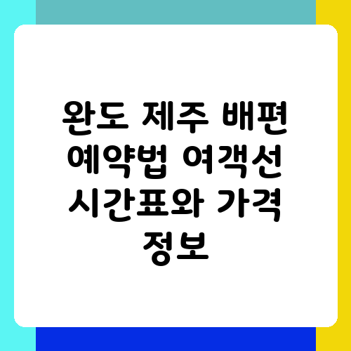 - 완도 제주 배편 예약법 여객선 시간표와 가격 정보 목차