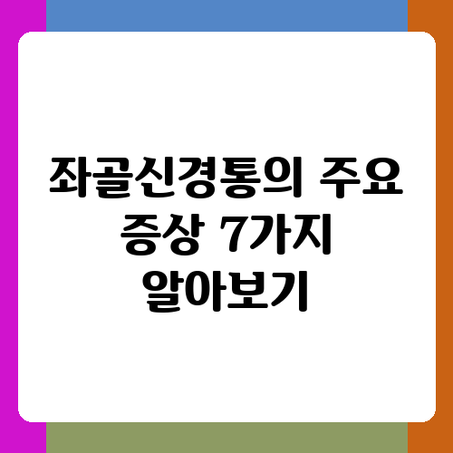 좌골신경통은 엉덩이에서 시작해서 허벅지 뒤쪽, 종아리, 발까지 이어지는 좌골신경의 염증이나 압박으로 인해 발생하는 통증 질환이에요. 증상은 사람마다 다르게 나타날 수 있지만, 대표적인 7가지 증상을 알려드릴게요. 혹시 여러분도 비슷한 증상을 경험하고 계신다면, 병원을 방문하여 정확한 진단을 받아보시는 것이 좋답니다.