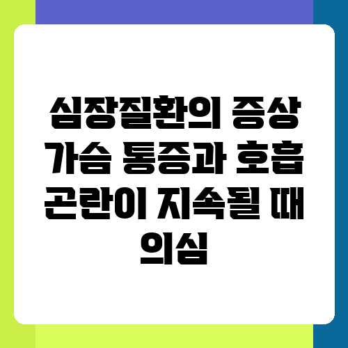 가슴이 답답하고 숨쉬기가 힘들어요. 혹시 심장 질환일까 걱정되시나요? 갑작스러운 가슴 통증과 호흡 곤란은 심각한 심장 질환의 징후일 수 있습니다. 이 글에서는 가슴 통증과 호흡 곤란이 지속될 때 어떤 심장 질환을 의심해야 하는지, 그리고 어떻게 대처해야 하는지 자세히 알려드리겠습니다. 심장 건강에 대한 걱정을 조금이나마 덜어드릴 수 있도록 최선을 다해 설명해 드릴게요.
