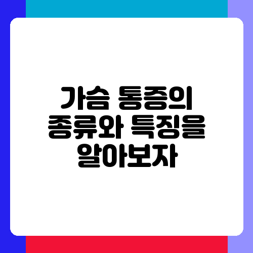 가슴 통증은 종류와 특징이 다양해서 어떤 통증인지 정확하게 파악하는 것이 중요합니다. 찌릿찌릿한 통증, 쥐어짜는 듯한 통증, 뻐근한 통증 등 다양한 형태로 나타나며, 통증의 위치와 강도 또한 사람마다 다릅니다. 예를 들어, 협심증의 경우 가슴 중앙에 압박감이나 쥐어짜는 듯한 통증이 나타나고, 심근경색은 갑자기 심한 압박감이나 쥐어짜는 듯한 통증이 발생하는데, 때로는 턱이나 왼쪽 팔로 통증이 퍼져나가기도 합니다. 단순한 근육통이나 소화불량과 혼동될 수 있으므로, 통증의 양상과 함께 동반되는 증상을 잘 관찰하는 것이 중요합니다. 가슴 통증이 몇 분 이상 지속되거나 심해진다면, 즉시 병원을 방문하여 정확한 진단을 받는 것이 좋습니다. 자신의 가슴 통증이 어떤 종류인지 잘 모르겠다면 의사와 상담하여 정확한 원인을 찾는 것이 최선입니다. 때로는 가슴 통증이 다른 질병의 증상일 수도 있기 때문에, 의료 전문가의 진단이 매우 중요합니다.