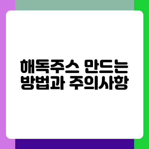 해독주스를 직접 만들어 드시는 것을 추천합니다. 재료를 직접 선택하고 만들 수 있기 때문에, 신선하고 안전한 해독주스를 즐길 수 있죠. 믹서기를 이용하여 원하는 재료들을 갈아주면 간단하게 완성할 수 있고, 취향에 따라 요거트나 꿀을 첨가하여 맛을 더욱 풍부하게 만들 수도 있습니다. 다만, 주의할 점은 재료 선택과 양 조절입니다. 너무 많은 양을 섭취하면 설사를 유발할 수 있으며, 과일의 당도가 높다면 혈당 관리에 신경 써야 합니다. 그리고 만약 특정 재료에 알레르기가 있다면, 반드시 확인 후 섭취해야 하겠죠. 저는 처음 해독주스를 만들 때 재료 비율을 잘못 맞춰서 쓴맛이 많이 났던 경험이 있답니다. 하지만 여러 번 시도하면서 자신만의 레시피를 찾게 되었어요. 인터넷에서 다양한 해독주스 레시피를 찾아보시고, 자신에게 맞는 레시피를 찾아보세요.