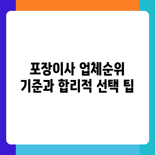 - 포장이사 업체순위 기준과 합리적 선택 팁 목차