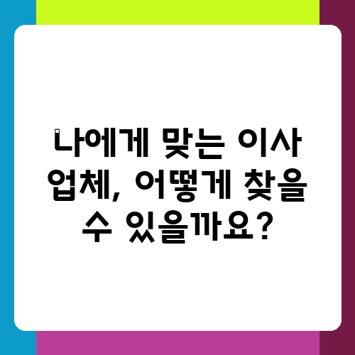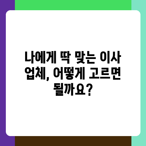 나에게 맞는 이사 업체, 어떻게 찾을 수 있을까요?